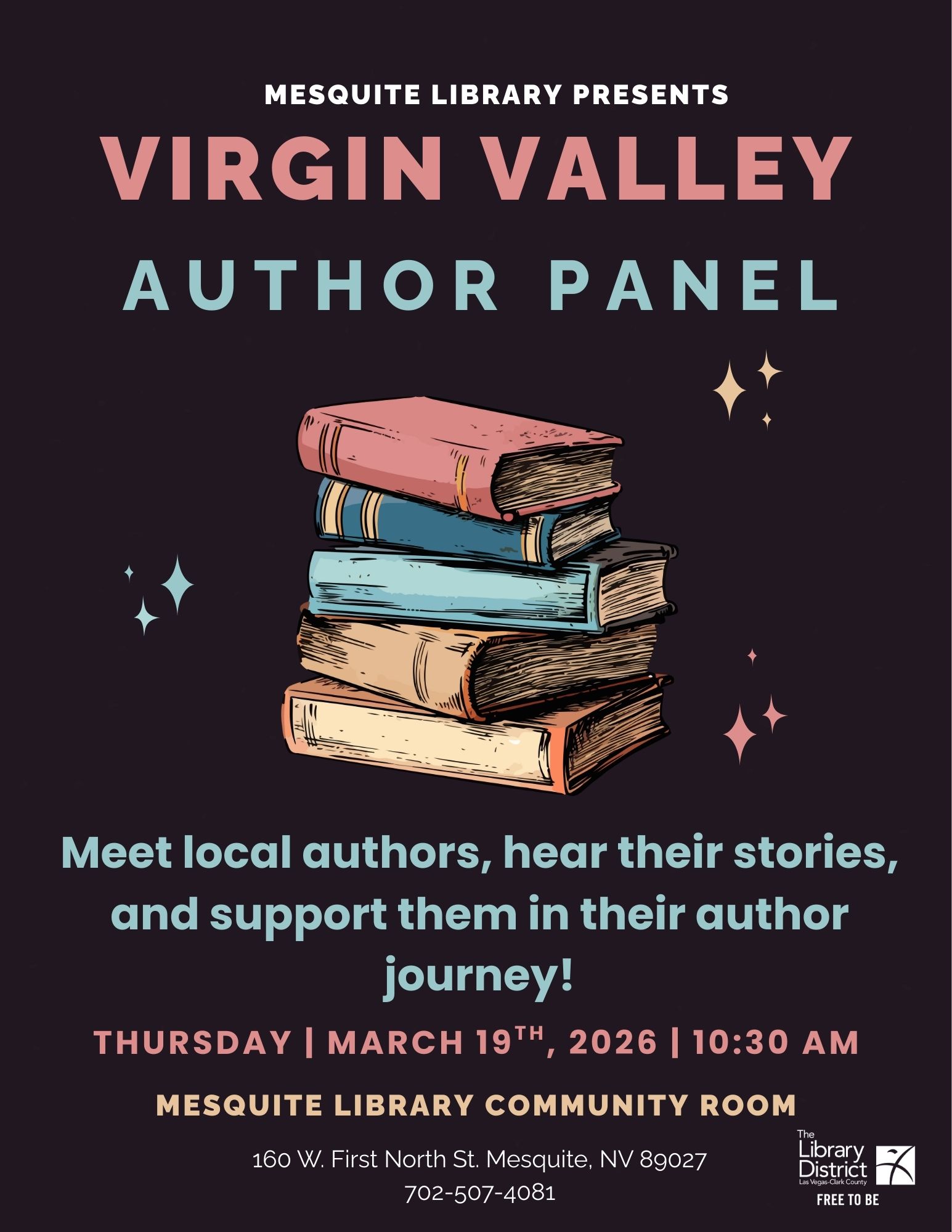 This event will appeal to readers and writers alike, especially if you live in Mesquite, or the surrounding communities of Bunkerville, Logandale, Littlefield and St. George. Mesquite Library will be hosting a panel discussion consisting of four local authors followed by a brief presentation of books penned by the panelists, who will also be signing copies of their literary works. I am honored to be one of the authors selected. The panel discussion will be moderated by Adult Services Assistant, David Hantho, and will be covering a wide range of topics. I am so looking forward to this event. It promise to be both informative and entertaining, and I thank the library for putting it together.
